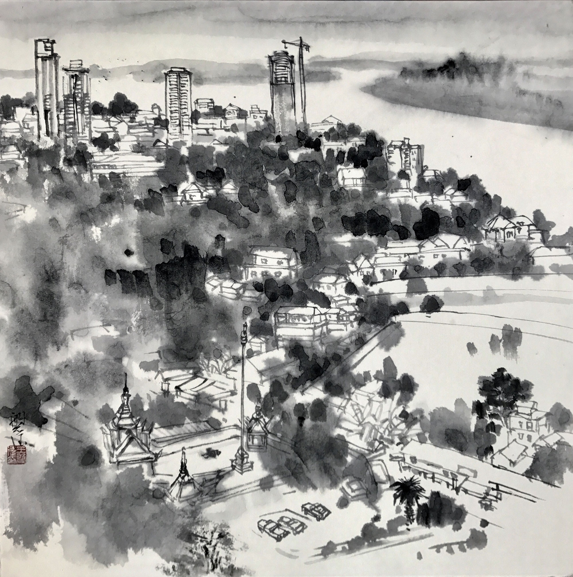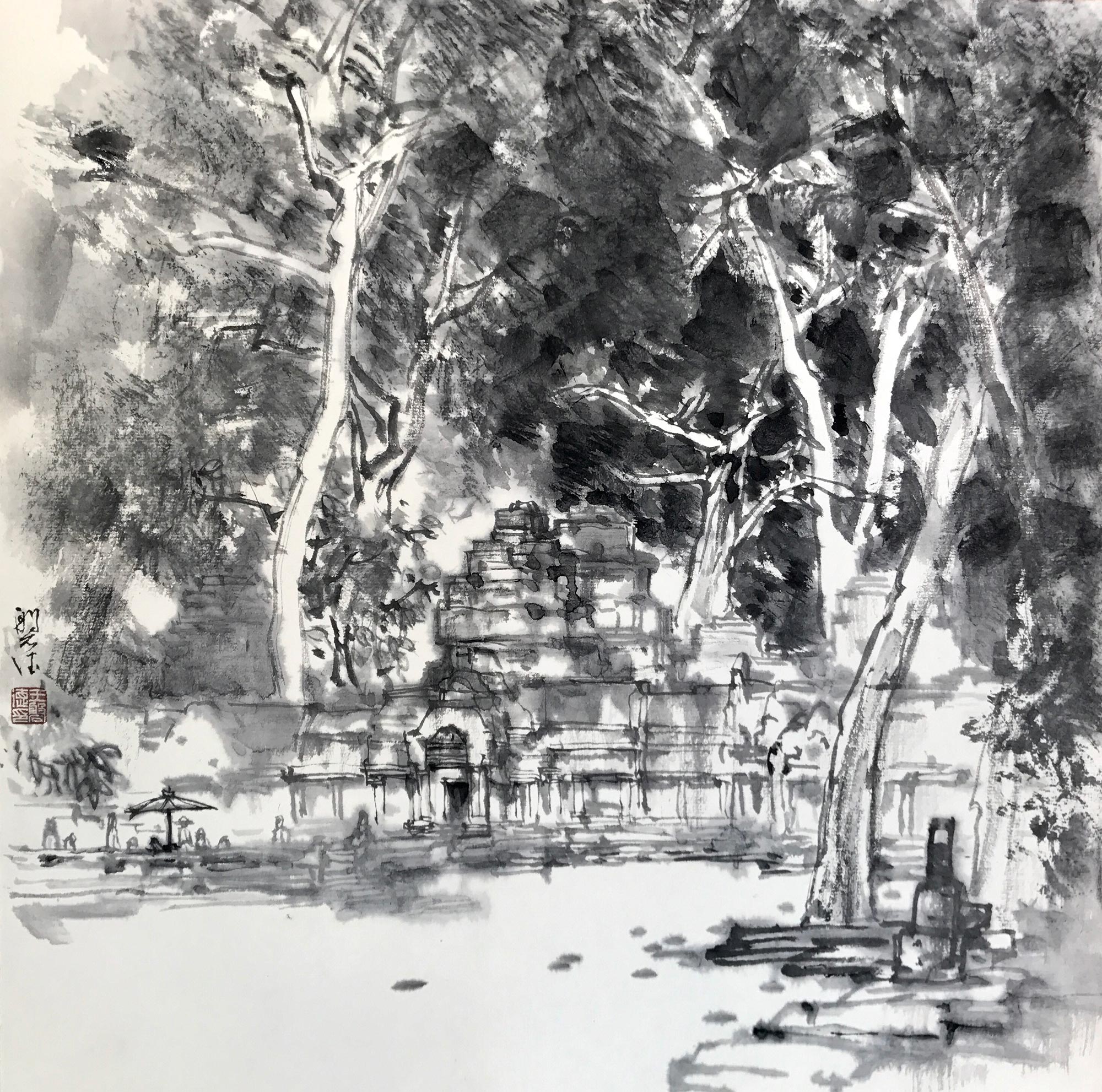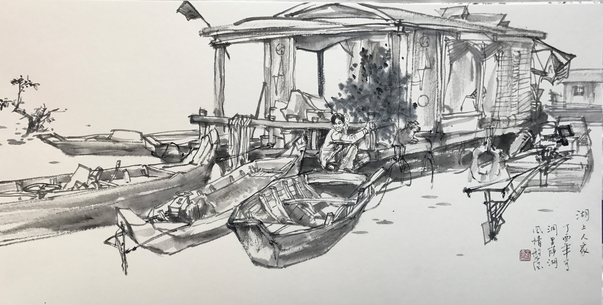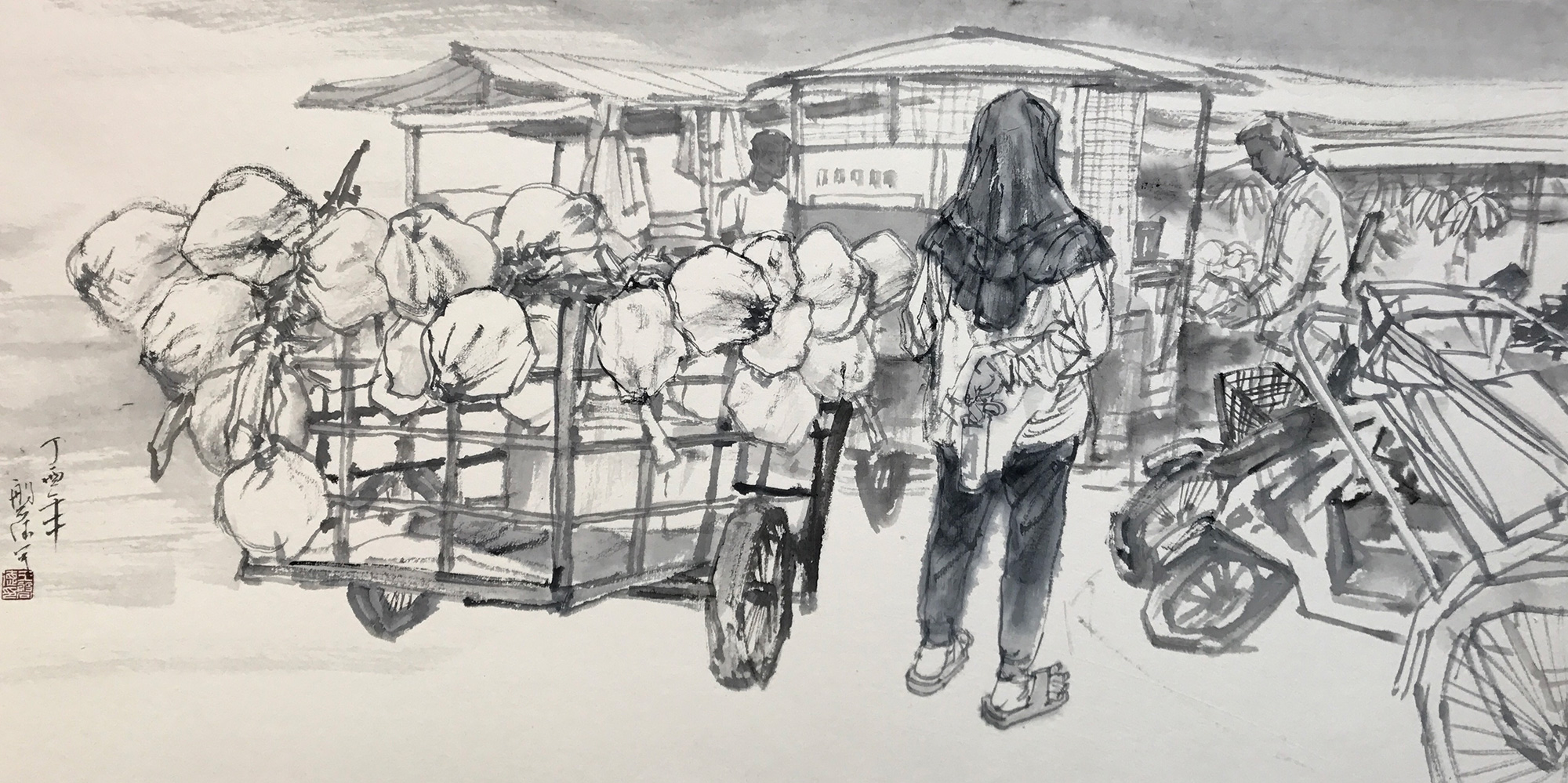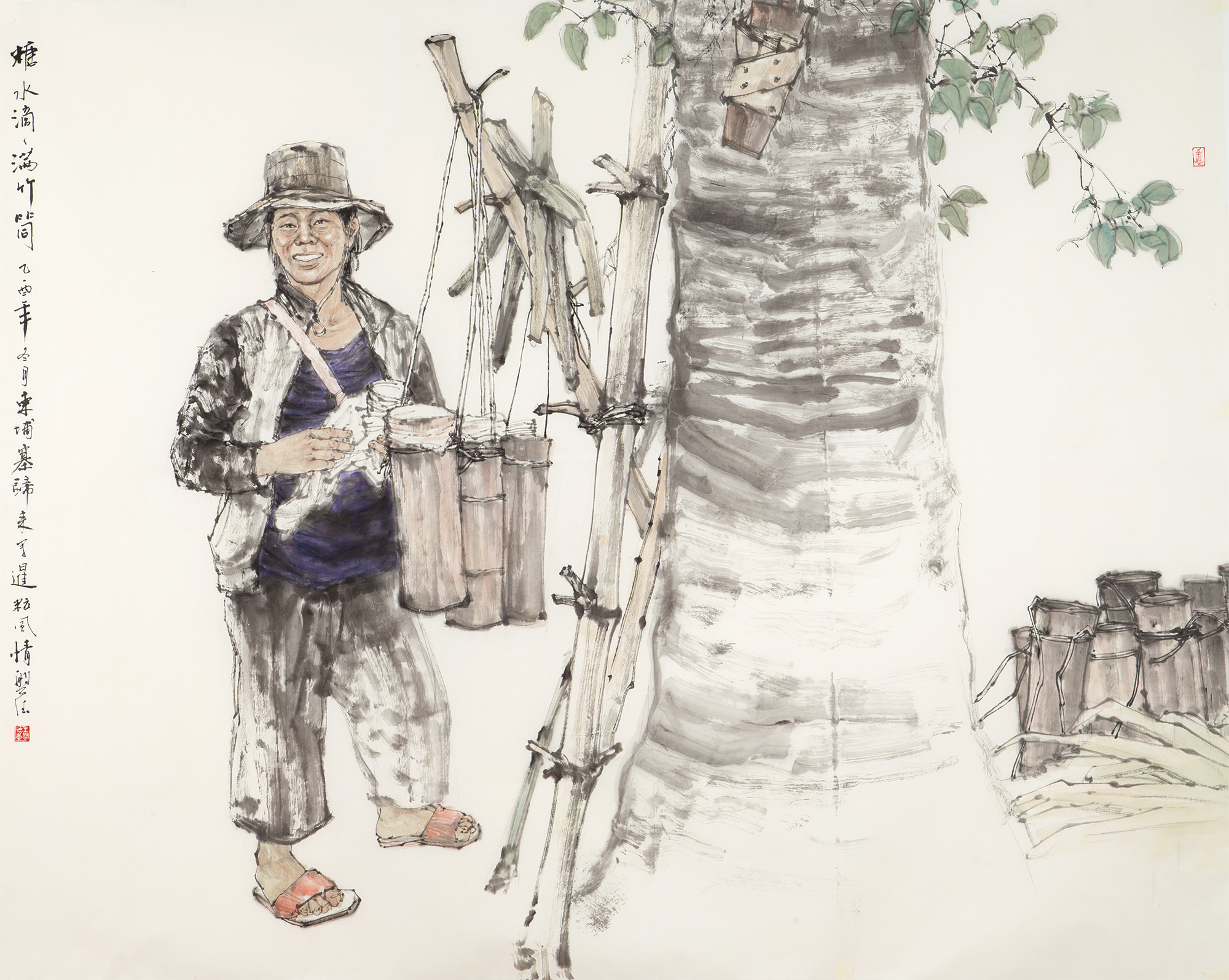 王磐德是美院出身的中国画家,他有两大特点,一是造型能力强,特别擅于写生,下笔轻重缓急,错落穿插,结构甚为紧密;二是生活气息浓,注意观察对象,善于捕捉人物转瞬即逝的表情,无论回眸一笑还是凝望注视或细细打量,总有一种意涵在内。在人物画领域,这也许是普遍的现象,但王磐德于此尤其突出,少有失误,其画之品格,与其人一样,朴实厚道,即古人曰厚德载物者是也。——郑工