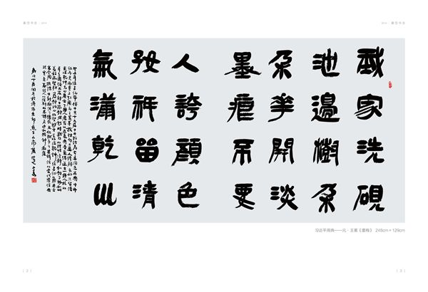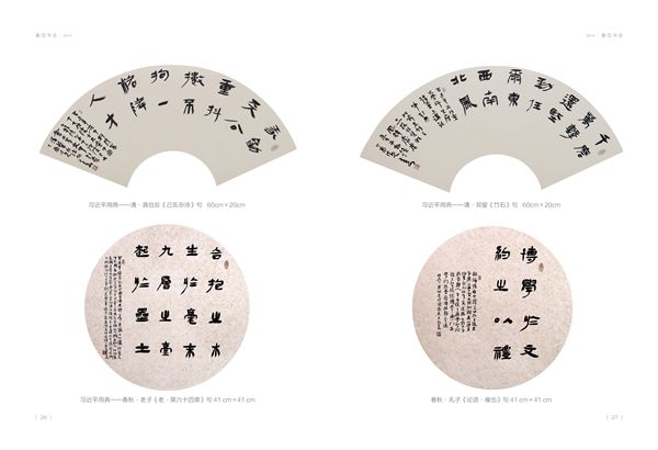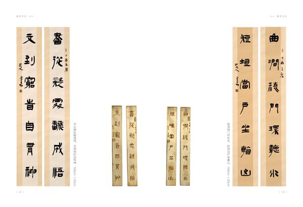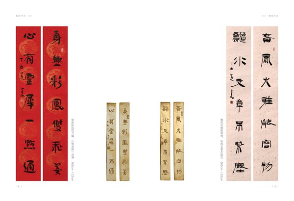 此次展览展出了高岱近期共50余幅作品,其中隶书行书各半。有巨幅八尺,也有尺牍小品,有四尺条屏,也有小幅扇面,另可见楹联精品及其镇尺衍生品,可谓形式多样。然无论擘窠大字,还是蝇头小字,均堪为精品力作,体现其近年于书艺孜孜以求,辛勤耕耘的探索与追求。
