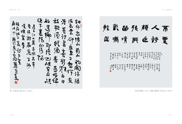 于创作内容,高岱选用习近平总书记近年讲话所引经典诗句,有感而书,与时俱进,文辞书艺并美,深具感染力与启迪性,作品格调高雅、形式新颖、内涵丰富,具有极高的赏评价值和艺术水准。得到领导、专家的一致高度好评。
