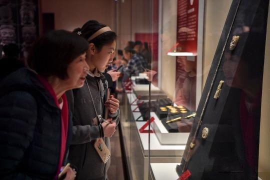其中,“盛世笙歌”单元通过乐舞陶俑、贵族宫廷日用器具、陈设器、装饰物品等,展现王侯贵族在富丽堂皇的宫殿中日日歌舞宴乐、钟鸣鼎食的奢华生活;“不朽来世”单元展出了广州西汉南越王墓出土的丝缕玉衣和河北满城汉墓出土的鎏金镶玉铜枕等,呈现了汉代王侯贵族的丧葬习俗;“丝路交通”单元选取20余件展品,既有域外舶来品,也有融合异域文化因素的中国制品,共同见证了秦汉时期中国与域外国家、地区的友好往来和文化交流。
