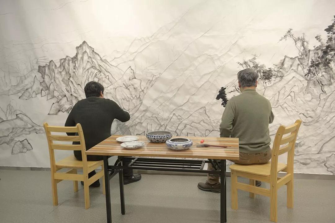 陈全胜先生和杨枫先生有着三十多年情谊的老友,作为艺术上的知音、生活中的挚友,二人此次合力创作《华不注山图》心意相通,相得益彰。陈全胜先生笔墨飘逸出尘,构图稳中求奇,意境清幽高雅,寥寥几笔,禅意入画,有超然物外之气息;杨枫先生具有中国传统山水画中一脉相承的宋元气息,在其营造的颇具古意的高山流水、林泉幽壑中,笔墨晕染自然,皴法奇妙独到,显示出他极为深厚的传统功底。