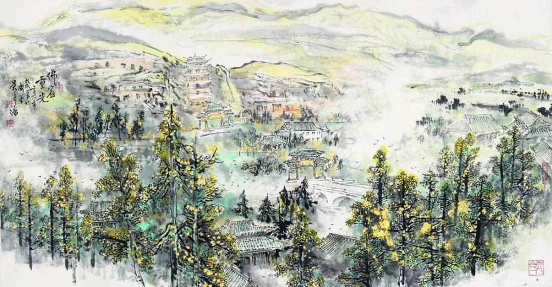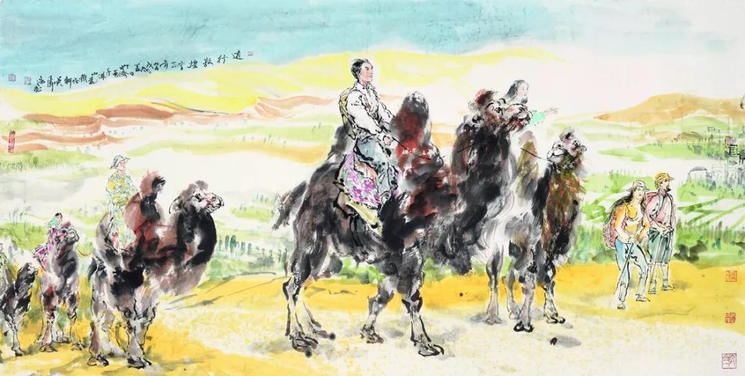 写意即是写情怀,盛世丹青铺华彩。吴泽浩先生系当代著名画家,全国第九、十届人民代表大会代表,济南市政协原副主席,济南市文联原主席。他早年就读于广州美术学院,师从关山月、黎雄才、杨之光教授,毕业后到山东济南工作,至今已50余年。他虽年逾古稀,创作力却非常旺盛,连续创作多个系列主题画作,其代表作品有泰山孔子系列、粤风鲁韵、扁舟藕花里、甲午海祭·铁铸抗战·长征路上三部曲等。吴泽浩先生对西北丝绸之路、河西走廊一直在密切关注,并作为他的主题创作一直在心里默默酝酿。他表示,敦煌是人类历史进程中的一个符号,不同文明在这里的交融,孕育了灿烂辉煌的敦煌艺术。敦煌藏经洞的发现引发了“敦煌学”在世界的传播,中国艺术家对敦煌艺术的发现则开启了敦煌艺术的研究与保护,成为现代中国文化史上的佳话。对于每一个从事文化艺术尤其是书画艺术的人来说,敦煌具有莫大的吸引力。一代又一代的中国艺术家或前往敦煌,作艺术的“朝圣”,吸收和借鉴敦煌艺术的精华;或遥想敦煌,作心灵的向往,在创作中接续敦煌艺术的文脉。“2016年,我从艺60多年来第一次踏上去敦煌的朝圣之路,途径兰州、西宁,过青海湖、张掖达到敦煌,参观了莫高窟等文化古迹。2017年8月,钟学军先生邀请我再访敦煌。我携妻带子牵孙和亲友一行十余人,沿着河西走廊写生,再朝佛窟,心灵又受洗礼。我不禁感叹,这片土地上曾经见证过多少人生的壮美、艺术情怀的弘广!我遂生一愿:创作一批敦煌题材的新作,书写敦煌、记述敦煌、讴歌敦煌……在敦煌举办一次展览。回到济南,即做足案头工作,陆续创作国画50余幅,河西走廊速写30余幅,诗文若干首。”