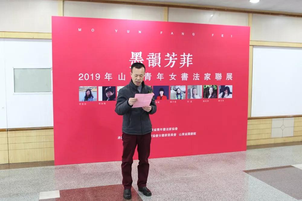 开幕式由山东省青年书法家协会女书家委员会秘书长高远主持。山东省青年书法家协会女书家委员会主任管恩昱代表参展女书家发言。她说,近年来,山东省书法家协会、山东省青年书法家协会加大对女性书法群体的关注与培养,为山东省女性书法事业发展提供了更加广阔的平台。广大女性书法创作者应该抓住机遇,潜心探索,深研传统,锐意创新,努力创作出更多无愧于伟大时代,展现当代女性风貌的精品力作。
