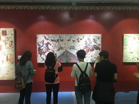 “我在来之前就了解到,此次展品的制作技艺非常精湛,是通过高清数码设备扫描拼接出来的,我仔细观察了一下,基本可以还原出壁画上土层和颜料的质感,这是非常难得的。”当天到现场观看展览的刘女士不禁感叹道,“我以前去观看过敦煌石窟,由于文物保护等原因,不能像在这里一样,这么近距离、清晰地观看壁画,从观赏体验上来说真的非常棒。”
