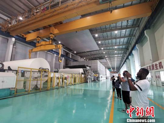 图为留学生们走进造纸企业,感受中国造纸技术的先进。 赵晓 摄