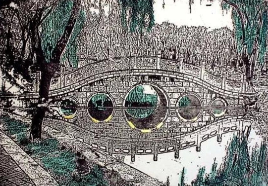 此桥位于孔子文化园内,小沂河之上,是一座典型的中国传统石拱桥,石桥采用五孔建制,既节省石料,又符合力学原理,既不失坚固,又扩大桥下过水量,其实用性不言而喻。此外,石桥十分优美,桥洞呈半圆形,像彩虹,像半月,五孔相连,横卧小沂河碧波之上。