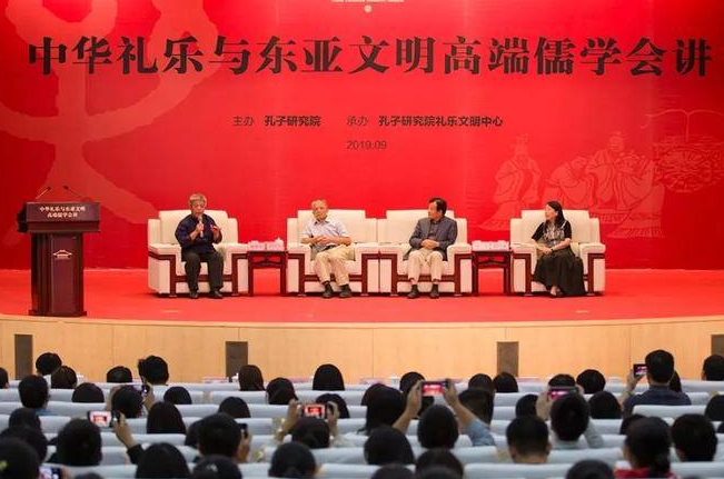 为庆祝中华人民共和国成立70周年和纪念孔子诞辰2570年,落实习近平总书记视察孔子研究院重要讲话精神,9月27日,孔子研究院举办“中华礼乐与东亚文明”高端儒学会讲。来自韩国首尔大学、中国人民大学、武汉大学、华东师范大学等二十多个高校和科研单位的三十多名儒学专家以及北京天坛、济南出版社、曲阜师范大学、济宁学院等机构及社会各界人士四百余人参加了会讲。
