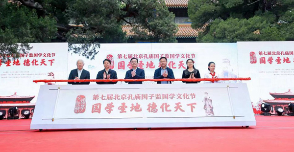 12日,伴随着东方歌舞团《水鼓子》悠扬的国风雅乐,由市文物局、东城区政府主办的第七届北京孔庙国子监国学文化节在孔庙和国子监博物馆大成殿前广场正式拉开帷幕。今年国学文化节还首次走进山东曲阜,在孔氏家庙——曲阜孔庙设置了分会场。