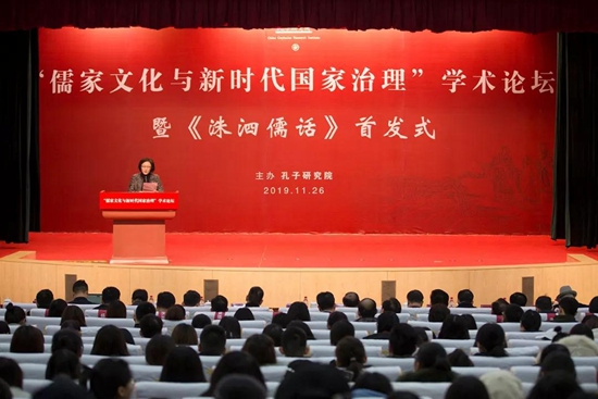 11月26日,为贯彻落实习近平总书记视察孔子研究院重要讲话精神和党的十九届四中全会精神,推出孔子研究院建院23年尤其是《孔子文化》《孔子学刊》创刊10年来的儒家文化研究与普及成果精粹汇编,孔子研究院举行“儒家文化与新时代国家治理”学术论坛暨《洙泗儒话》首发式。来自北京大学、北京师范大学、中山大学、山东大学等十余个高校和科研单位的三十多名儒学专家以及山东人民出版社、曲阜师范大学、济宁学院等机构及社会各界人士四百余人参加了本次活动。