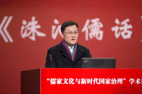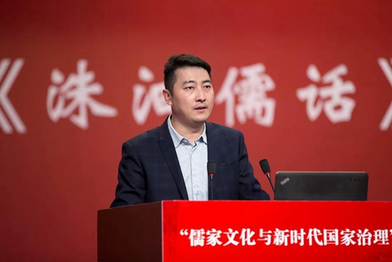 开幕式暨首发式后,举行了“儒家文化与新时代国家治理”学术论坛。孔子研究院特聘专家、山东省泰山学者、北京大学儒学研究院副院长干春松教授主持了学术论坛主题演讲。