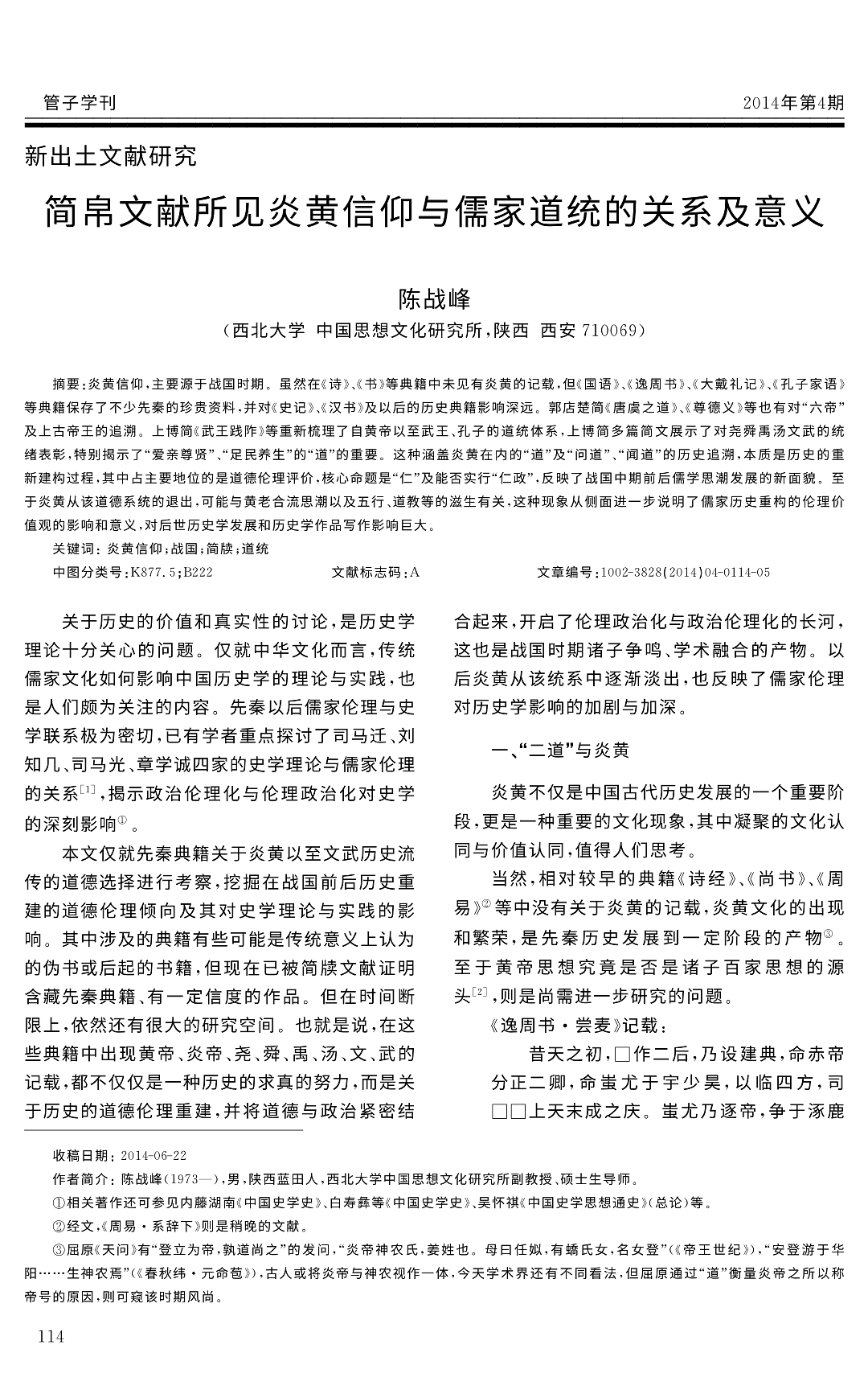 简帛文献所见炎黄信仰与儒家道统的关系及意义