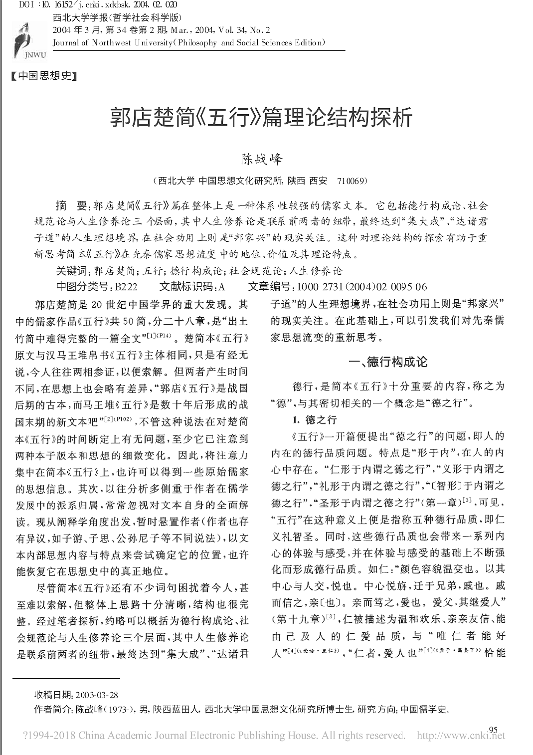 郭店楚简《五行》篇理论结构探析