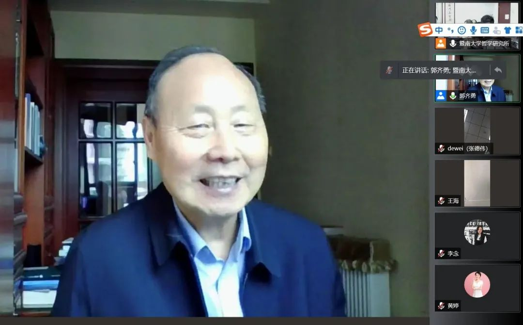 4月14日,郭齐勇应邀出席在线讲座,讲述中国哲学史百年回顾与当代发展(李念截屏)
