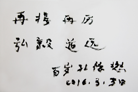 百岁老人孔德懋先生为中国孔子基金会题写“再接再厉,弘毅道远”寄语