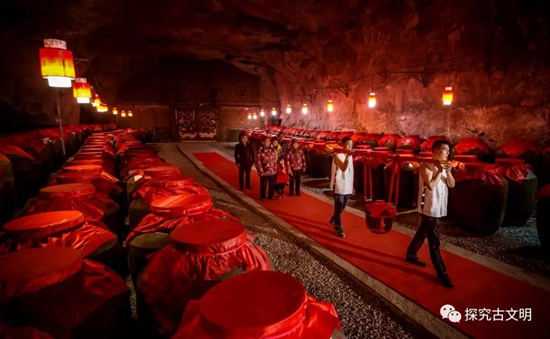 龙凭紫穴,蛟锁神窟,气环灵岫,顶落钟乳。湿润与恒温相合,封存与酿造相濡。得名山之赐予,开深洞之用途。生春来此,日催成熟,原浆在此,日久丰舒。