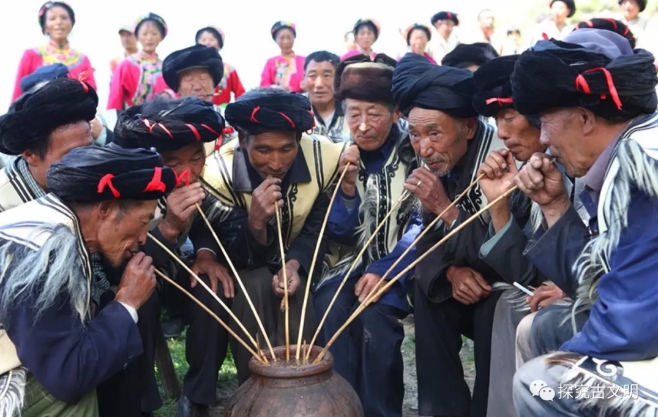咂酒:当代贵州的少数民族依然饮用。