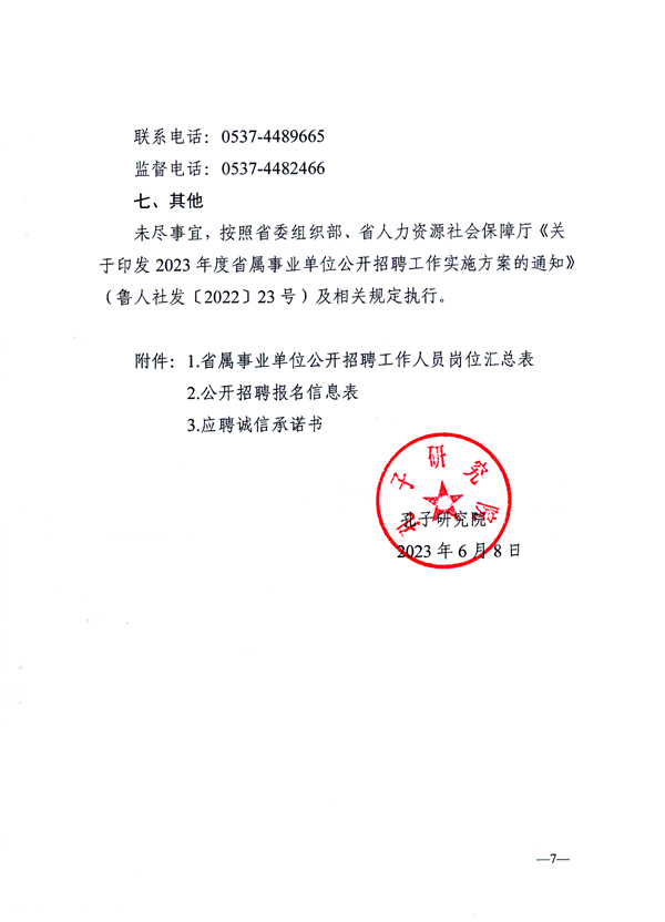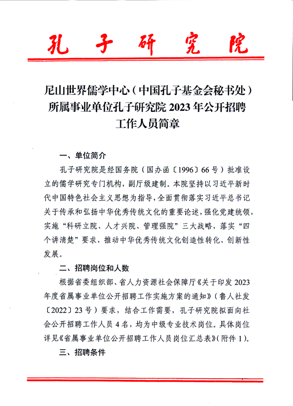 尼山世界儒学中心(中国孔子基金会秘书处)所属事业单位孔子研究院2023年公开招聘工作人员简章