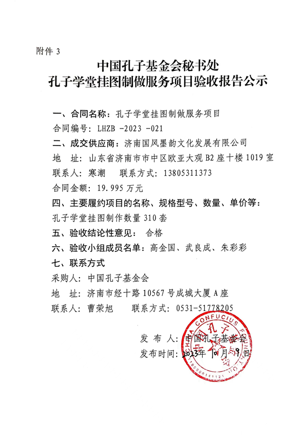 中国孔子基金会秘书处孔子学堂挂图制做服务项目验收报告公示