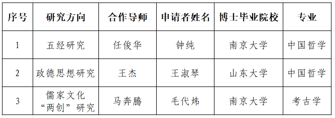 尼山世界儒学中心(中国孔子基金会秘书处)2023年博士后拟招收人员公示