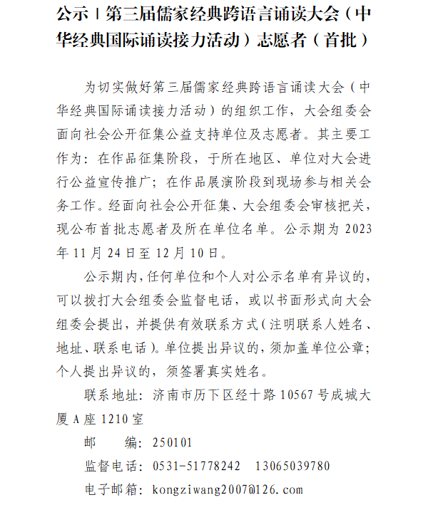 公示|第三届儒家经典跨语言诵读大会(中华经典国际诵读接力活动)志愿者(首批)