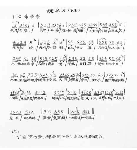 图3 吴芳吉《婉蓉词》流沙河先生吟诵(赵梅记谱)