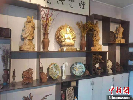 31日,54岁的王全胜在工作室忙碌着,用手中的刻刀,一笔一笔细细刻画着木雕作品。
