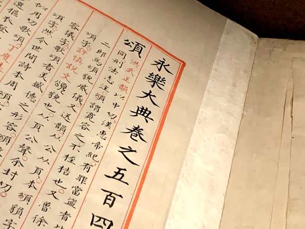 《永乐大典》是国家图书馆善本中的“四大专藏”之一,也是中国古代典籍中最神秘的、故事最多的文献古籍。为了让读者感受《永乐大典》“朱墨灿然、温润古雅、版式精美”的特点和一代代学者在民间搜罗、寻找这部传说中的典籍的艰辛,以及《永乐大典》在历史中的那些传奇故事,5月31日,国家图书馆的典籍博物馆举办“珠还合浦 历劫重光——《永乐大典》的回归和再造”展览,该展览6月1日起面向社会公众免费开放。