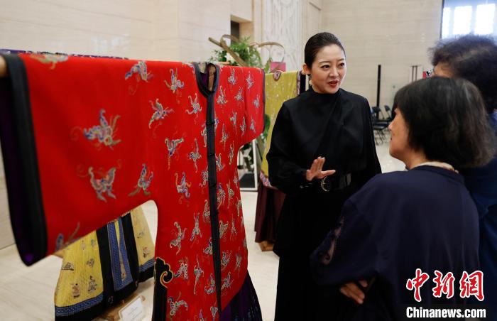 现场的毕红一身古典美衣。她手持新书与在座嘉宾和媒体分享了从事清代宫廷服装收藏、传承京绣技艺,设计中式服装的心路历程。毕红现为北京工美大师、北京“京工巧匠”,北京大学考古文博院青年导师,北京服装学院客座教授。她师从中国古代服饰文化泰斗、清华大学美术学院教授黄能馥,国家级非物质遗产项目苏绣代表性传承人、中国工艺美术大师蒋雪英。