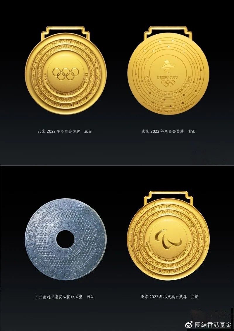 北京冬奥会和冬残奥委会的奖牌设计,以玉璧为灵感,与2008年北京奥运会“金镶玉”奖牌相呼应,展示北京作为“双奥之称”的风采。(网上图片)