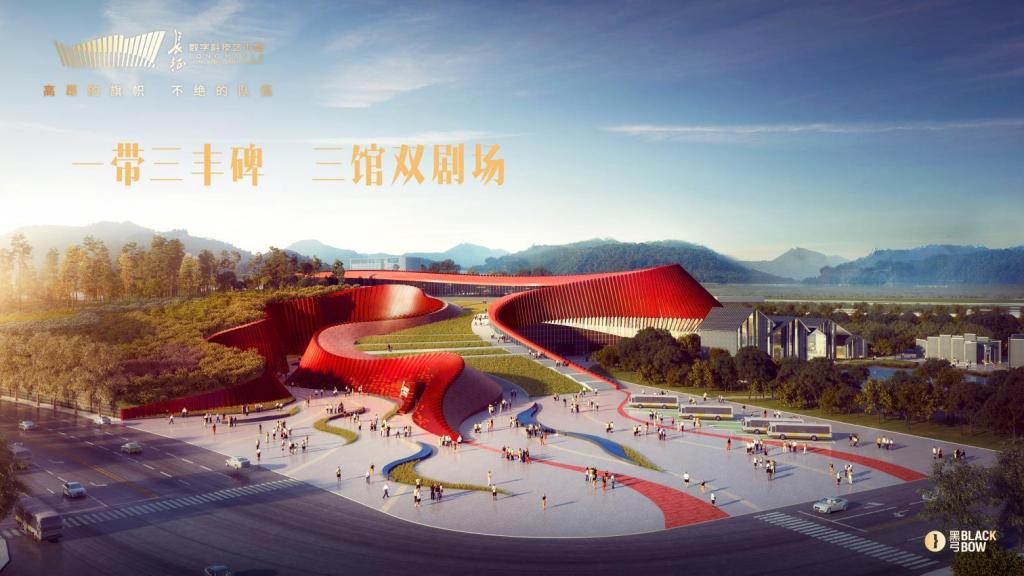 “地球的红飘带”一词来源于著名作家魏巍创作于1987年的长篇小说。长征数字科技艺术馆的创作过程,也在建筑设计和艺术创作的层面呼应此概念。