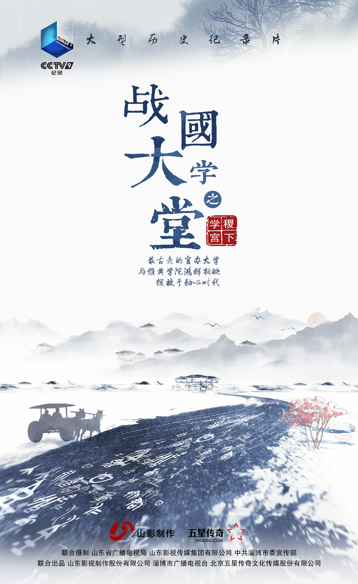 4月17日,由山东省广播电视局、山东影视传媒集团有限公司、中共淄博市委宣传部联合摄制,历时15年创意论证,3年多筹备、拍摄和制作,六易其稿,精心打磨的《战国大学堂之稷下学宫》登陆CCTV9纪录频道,稷下学宫最辉煌的150年故事娓娓道来,孟子、荀子、邹衍、韩非、李斯、叔孙通等历史人物一个个鲜活起来。纪录片以严谨的学术水准、科学的历史判断和厚重的文化含量,获得高度好评,时隔2000多年,稷下学宫变身“网红大学”。