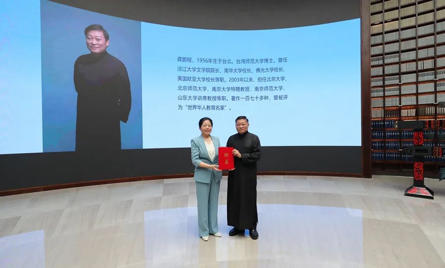在仪式上,尼山世界儒学中心党委书记、副主任国承彦同志为当代著名学者龚鹏程先生颁发孔子博物馆名誉馆长聘书。