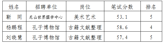 经资格审查等程序,对不具备报考条件或放弃资格造成的空缺,按笔试成绩依次递补。现将尼山世界儒学中心及所属事业单位2022年公开招聘递补进入面试范围考生信息公示如下: