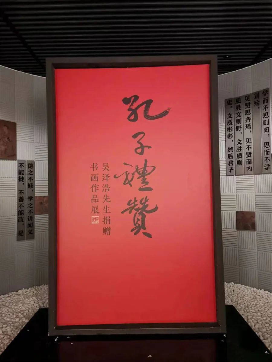 为表达对吴泽浩先生无私捐赠精神的敬意,孔子博物馆举办了“孔子礼赞”捐赠作品展。展览展出作品68幅,通过书法、绘画的形式,全面展示孔子其人、其事、其思、其泽,是对孔子予以内向深入的挖掘和多维度的立体呈现,再现孔子由凡入圣的传奇经历,为“孔子圣迹图”题材再添锦绣之作。