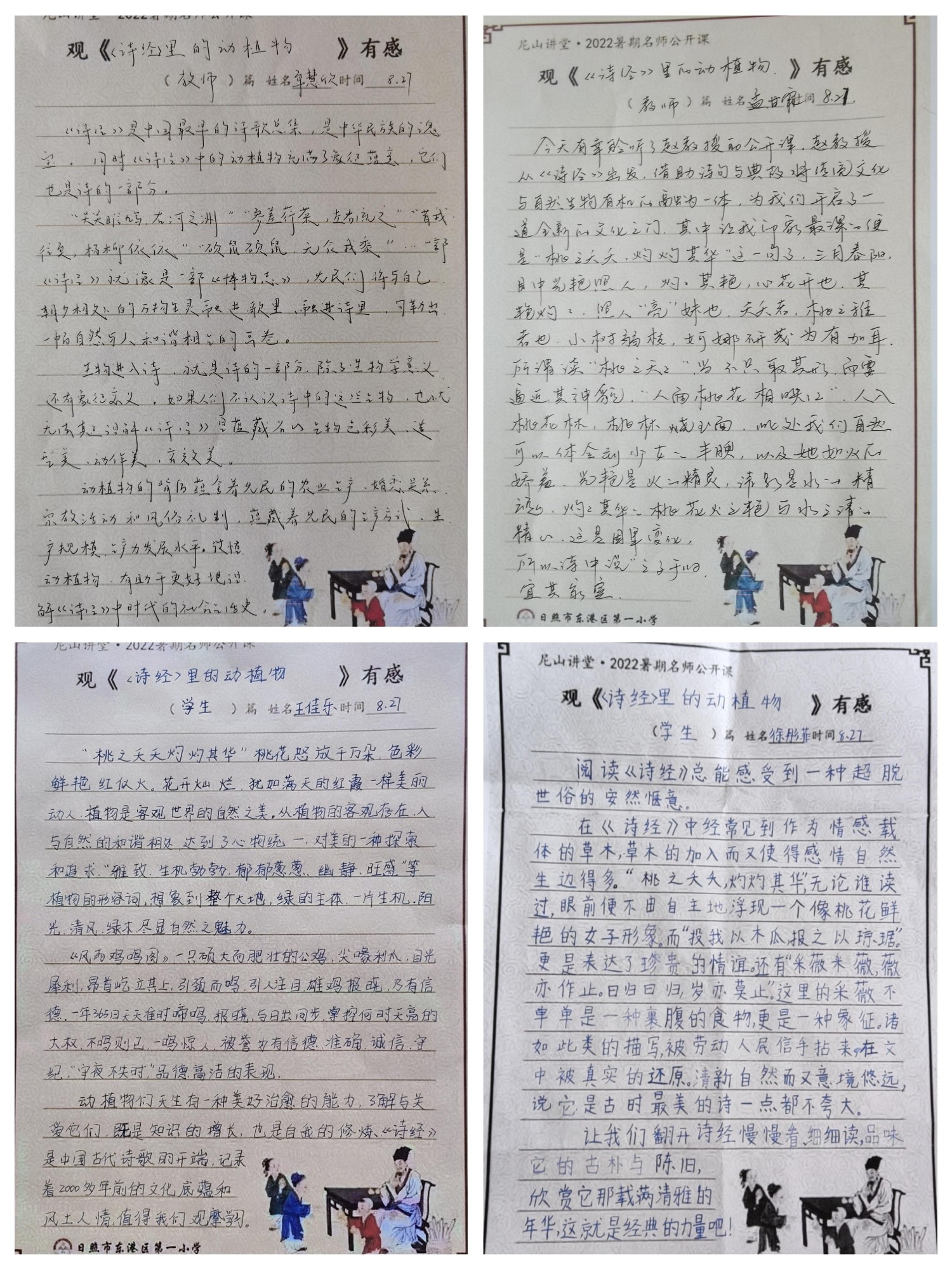 “生物进入诗,就是诗的一部分,除了生物学意义,还有象征意义,如果人们不认识诗中的这些生物,也就无法真正理解《诗经》里蕴藏的生物色彩美、造型美、动作美、音效美。”日照市东港区第一小学的教师牟慧欣在观后感中如是写道。