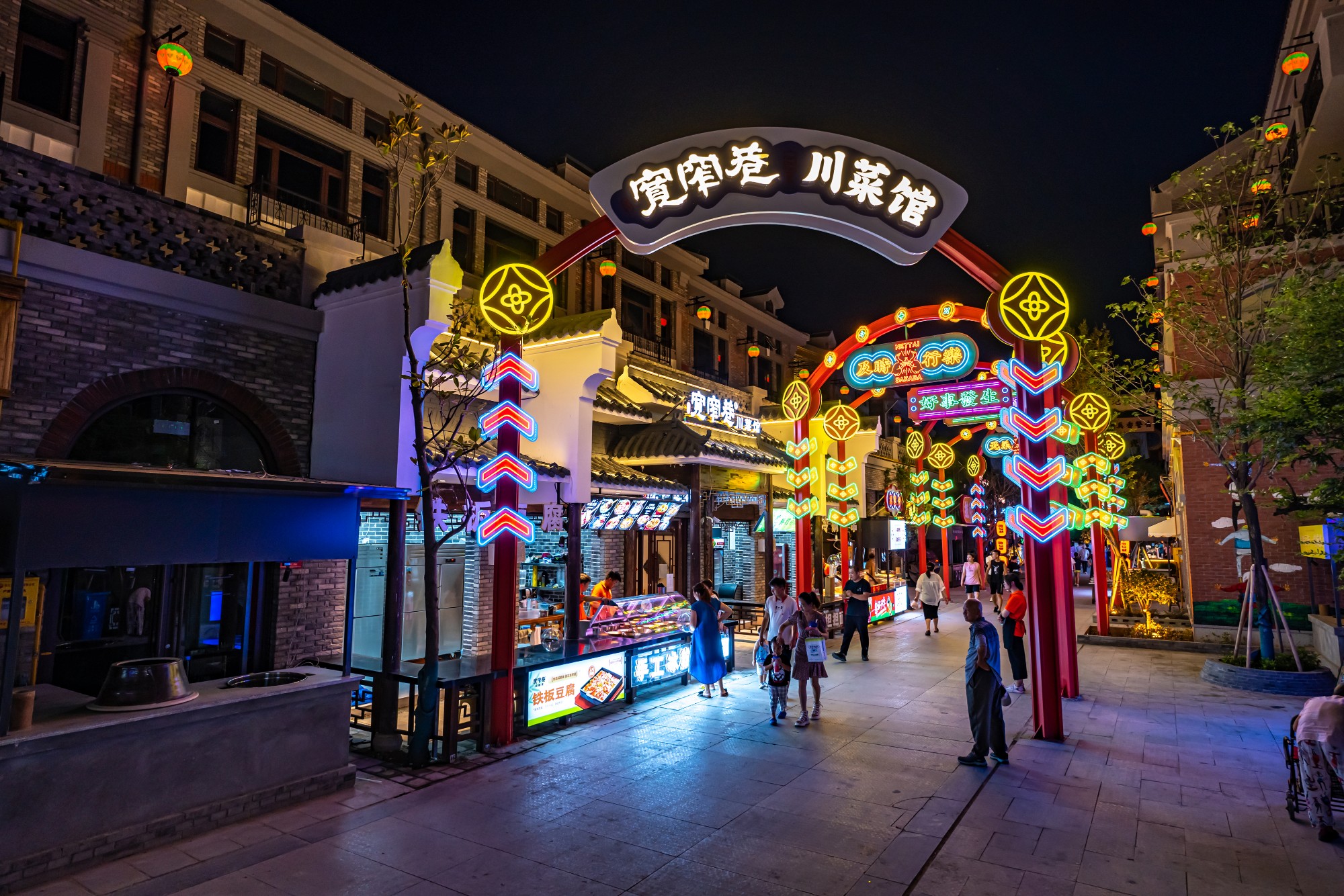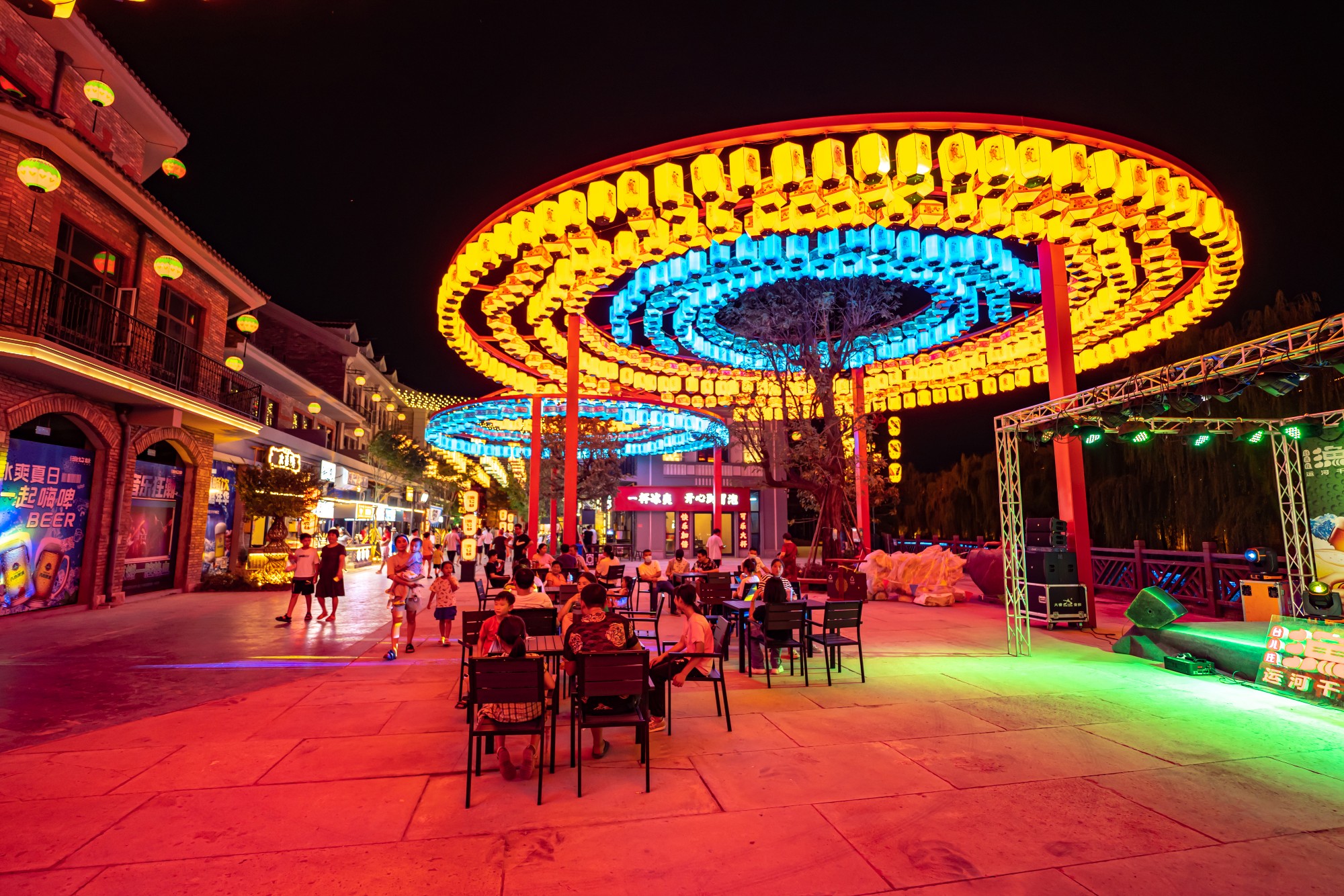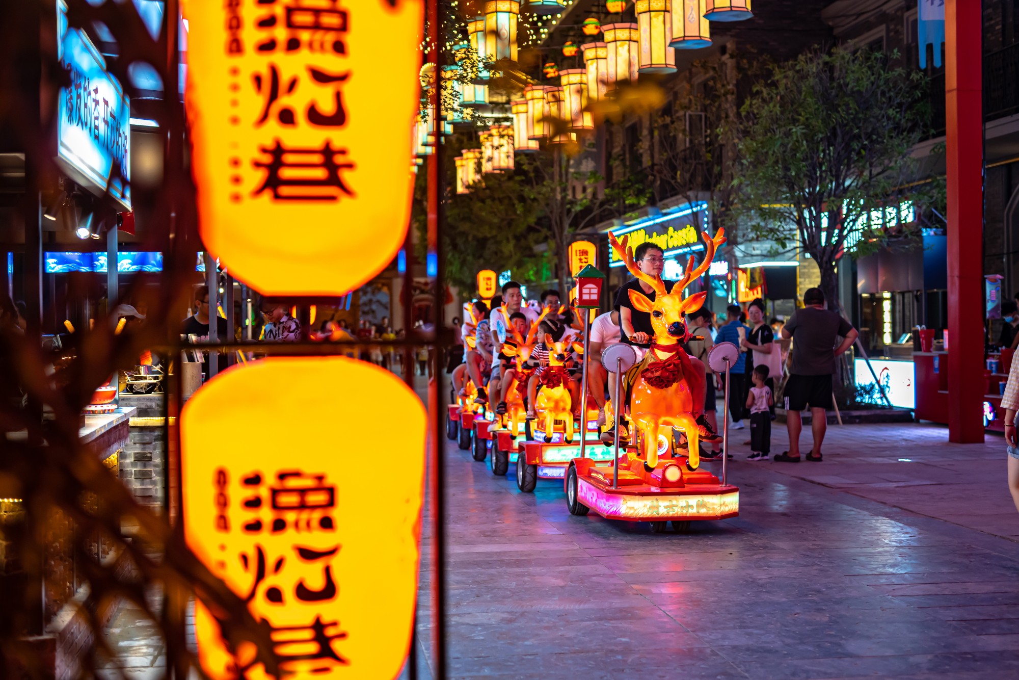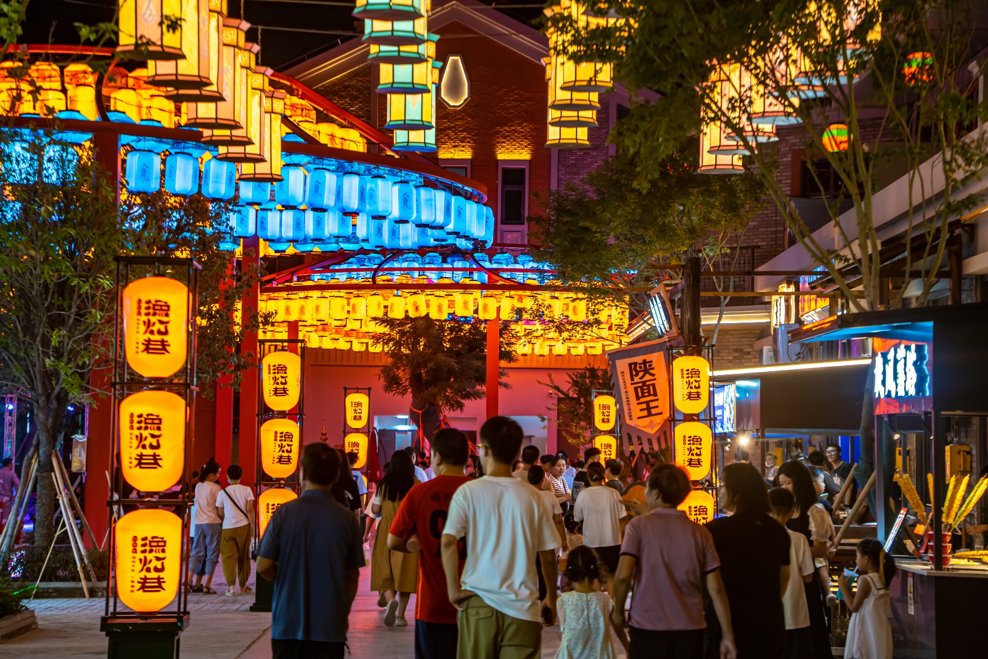 渔灯巷,以千年运河文化和渔灯文化为引领,以中华美食业态为轴心,共架设万余盏各类景观灯笼和灯组,打造了百余处街区和运河景观,以夜景、游乐、演艺、非遗、文创、高端酒店等多种业态相融合,旨在以现代化的呈现方式,将曾经的运河繁华重新演绎呈现。