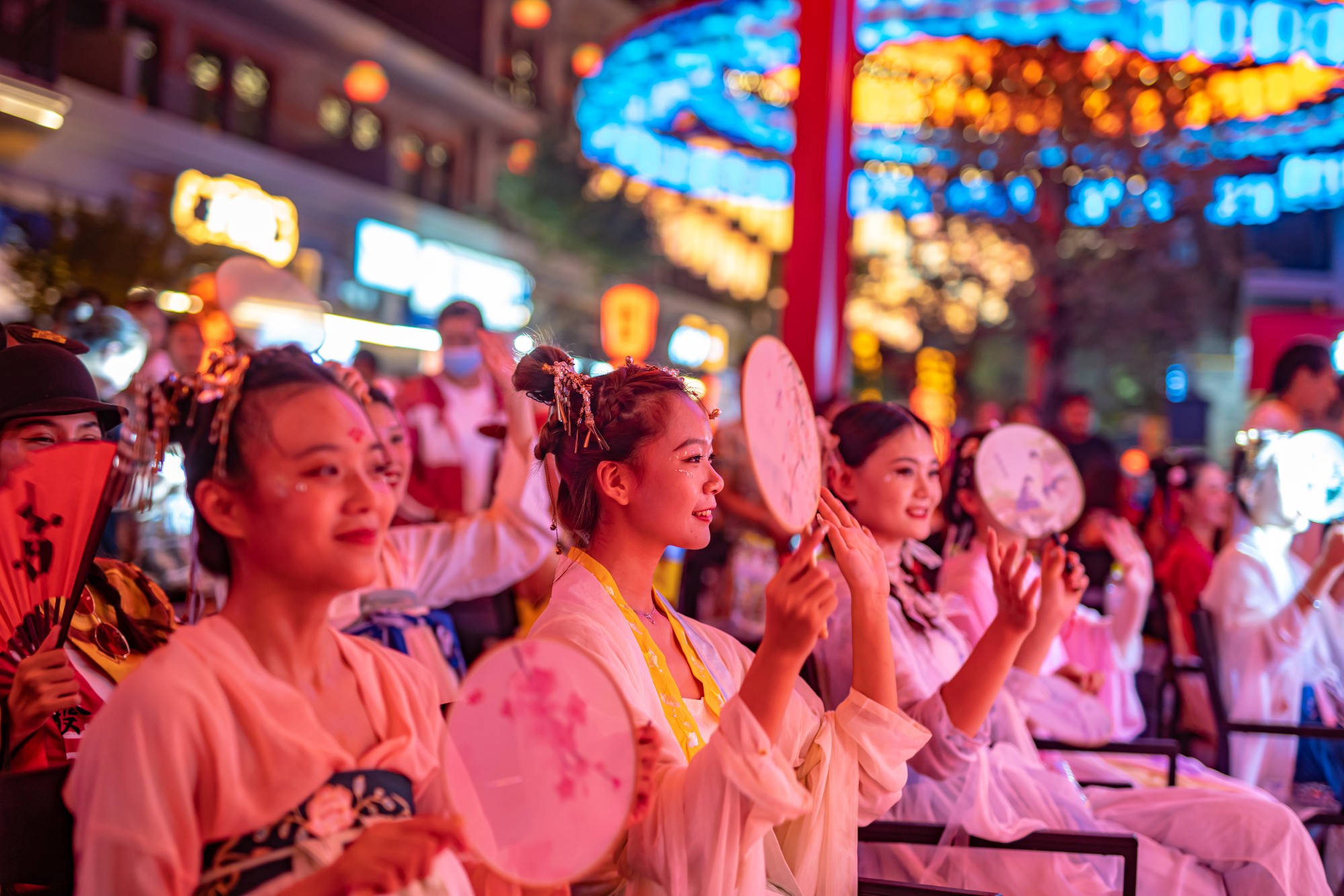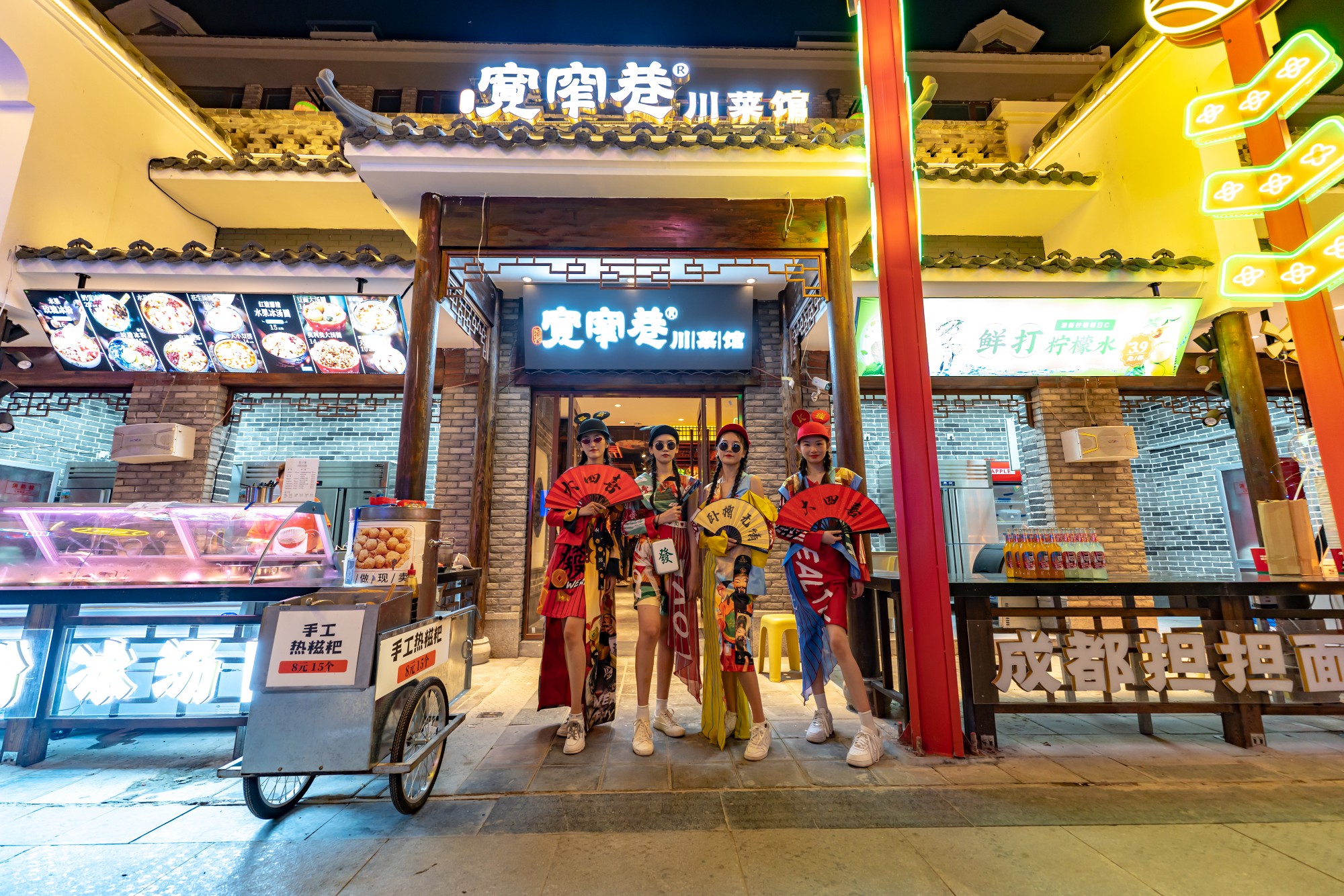 夜幕降临,踏入街区只觉渔灯美若星河,不同朝代风貌交叠,不同业态缤纷多彩,宛若一幅当代版的“清明上河图”。