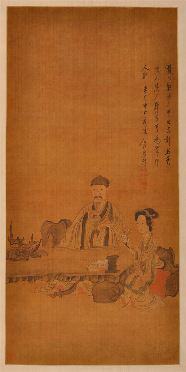 明,陈洪绶,仙侣图,绢本设色,101×48.5厘米(北京市文物局供图)