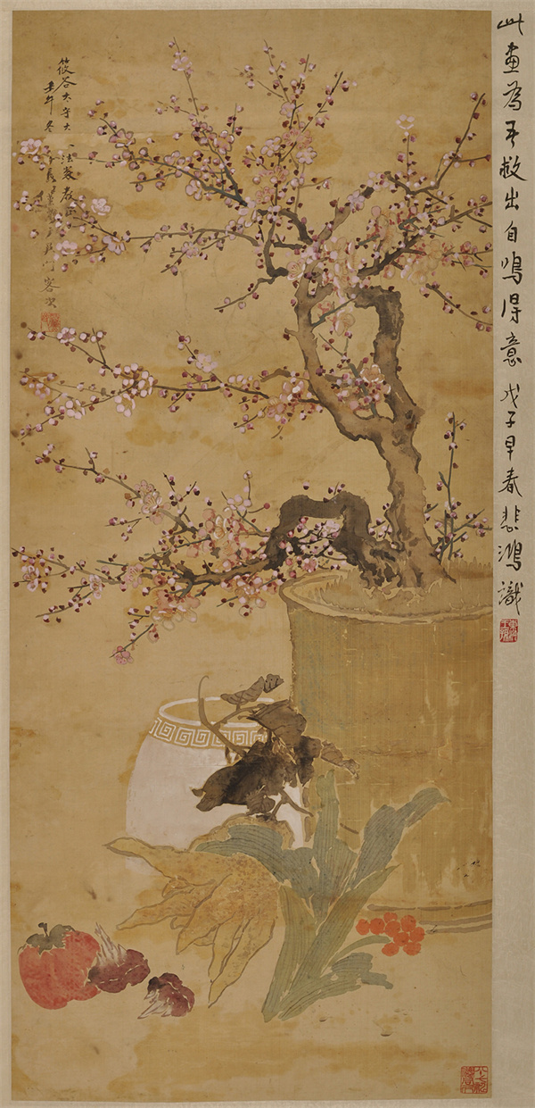 清,任薰,岁寒图,绢本设色,98×43厘米(北京市文物局供图)