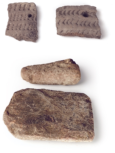 河北四台新石器时代遗址出土的戳印纹陶片、磨杵与盘