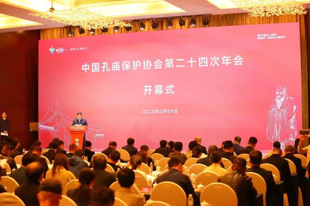 年会开幕式由中国孔庙保护协会会长孔德民主持,邓崴、孔令玉、苏渝杭分别致辞。