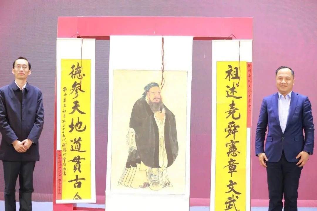 为感谢衢州承办本次年会,孔德民代表中国孔庙保护协会、曲阜至圣庙赠送《孔子行教像》。衢州孔氏南宗家庙管理委员会主任孔令立代表接受。