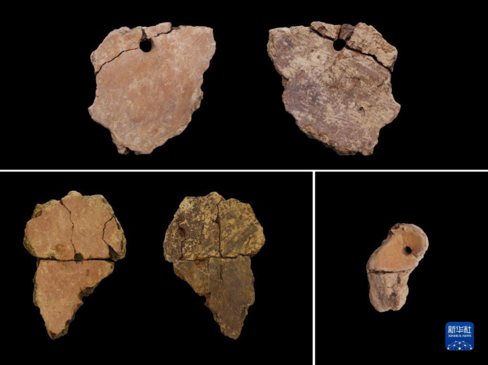 山东临淄赵家徐姚遗址出土穿孔陶片(资料照片)。新华社发(国家文物局供图)
