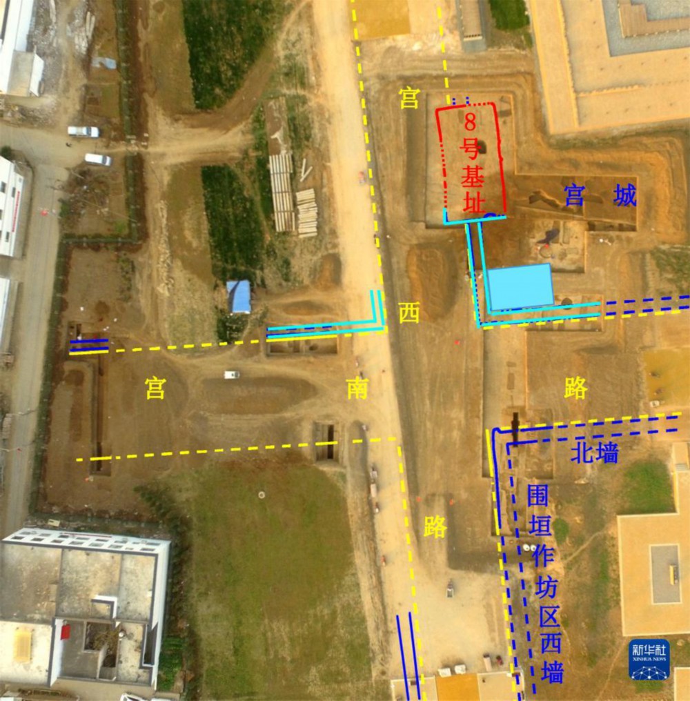 河南偃师二里头都邑8号基址、宫城西南与作坊区西北部航拍(资料照片)。新华社发(国家文物局供图)