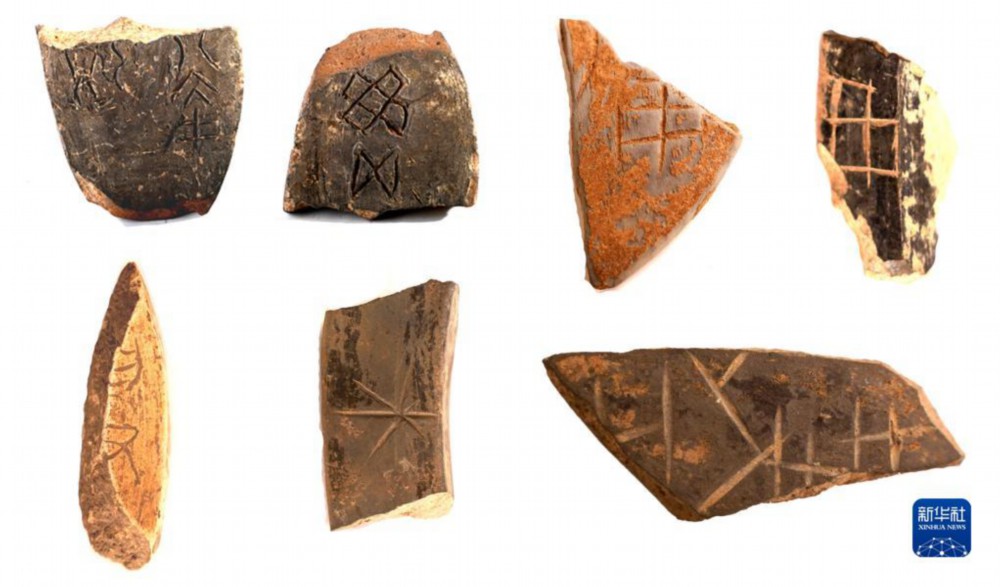 陕西旬邑西头遗址出土的陶器刻划符号与陶文(资料照片)。新华社发(国家文物局供图)