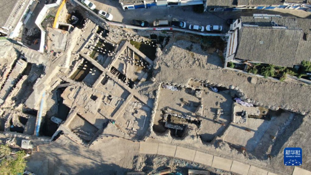 俯瞰浙江温州朔门古港遗址发掘出的古码头遗址(2022年10月10日摄,无人机照片)。新华社记者 翁忻旸 摄