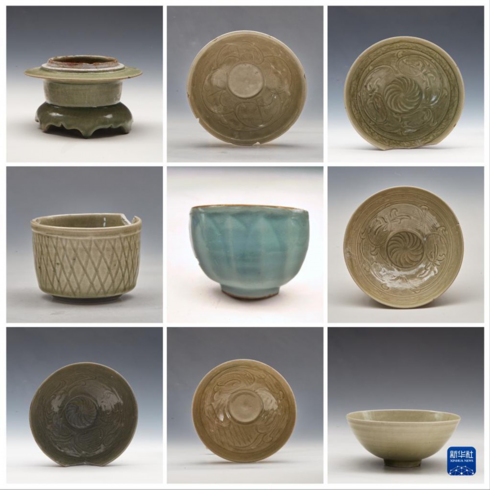 浙江温州朔门古港遗址发掘出的龙泉窑瓷器(拼版资料照片)。(温州市文物考古研究所供图)