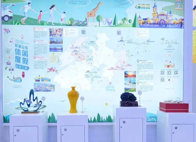 “沿着黄河遇见海”是“好客山东好品山东”的一张亮丽名片,在这个展区可以遇见温柔静谧的日照,邂逅文艺又有情调的青岛,欣赏国色天香的菏泽牡丹,品尝历史悠久的东阿阿胶……这里集中展示了山东省沿黄、海洋文化旅游资源,为游客出行打卡提供参考和指南,助力释放文旅消费潜力。