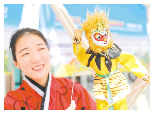 4月30日,青岛市市北区广兴里的木偶演出,吸引众多游客观看。(□记者 卢鹏 通讯员 张进刚 报道)