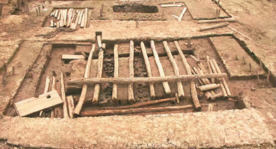 宝船厂遗址六作塘底部发现的三号遗迹。祁海宁摄
